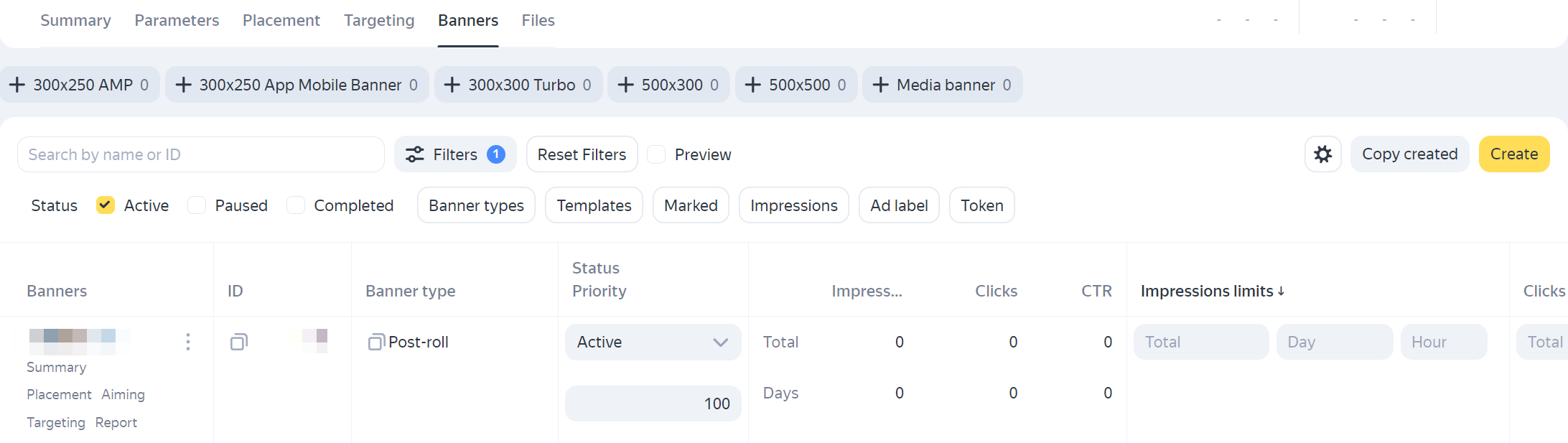 To copy a banner to an ad campaign, click → Copy next to the banner.