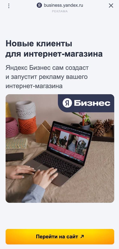• Баннеры с другими шаблонами, в том числе сторонние коды, баннеры Рекламной сети Яндекса и внешних монетизаторов, тоже будут отрисованы на весь экран, а все элементы полноэкранной рекламы будут добавлены автоматически.
