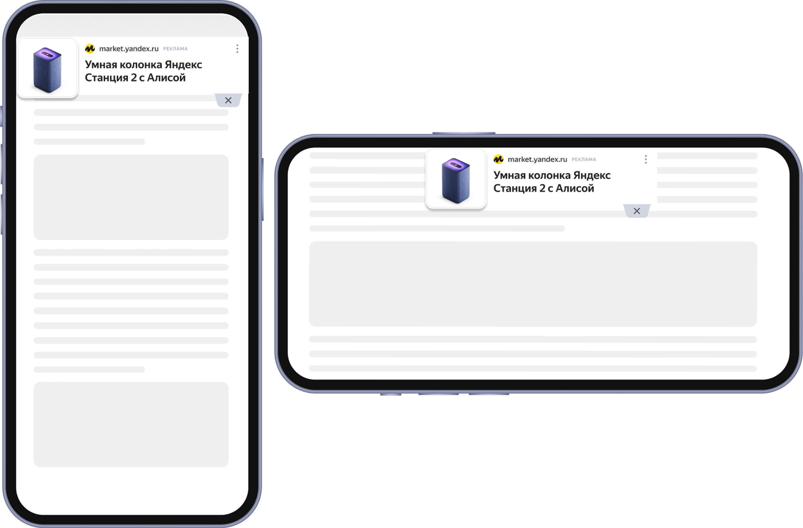 • Максимальная высота не превышает 30% длинной стороны экрана. Объявления с большей высотой будут вписаны в блок с изменением размеров.