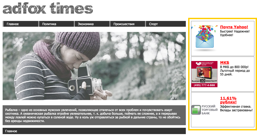 Например, вот так будет выглядеть размещение трех кодов вставок от одной площадки с типом неповторяющиеся баннеры.