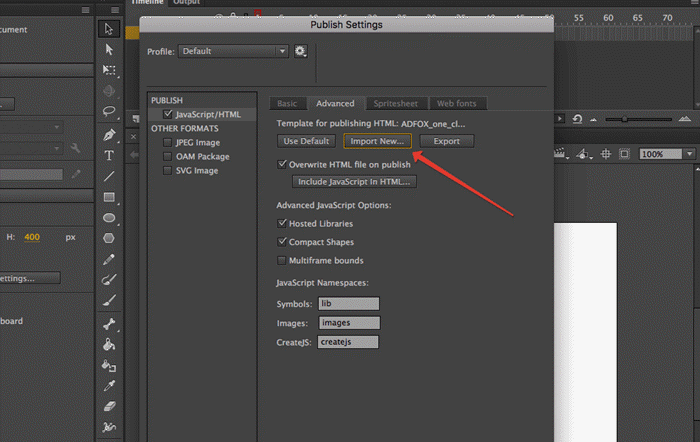 Создайте в Adobe Animate проект HTML5 Canvas (или откройте уже существующий).